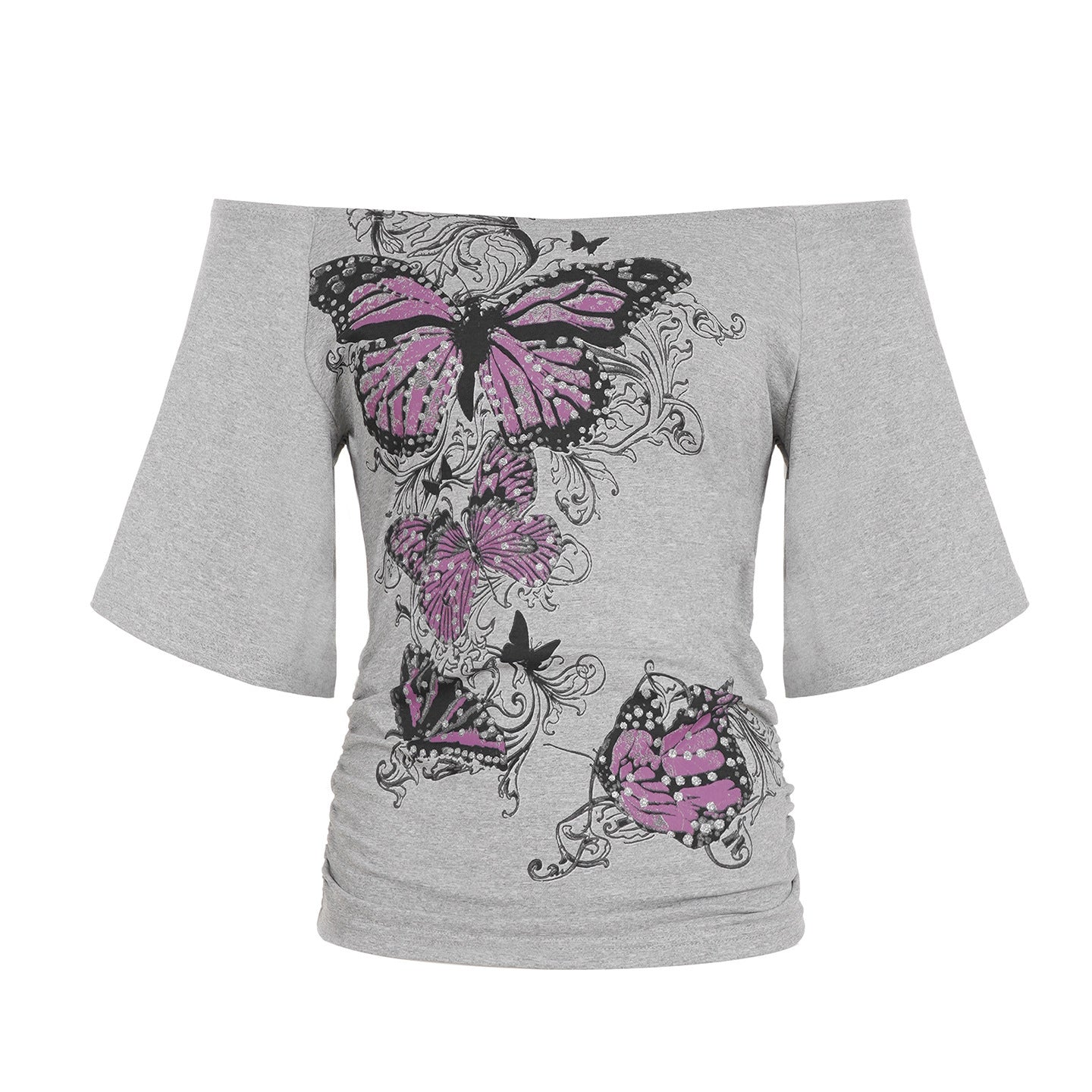 American Street Niche Design Retro Floral-print Off-shoulder Short Sleeve