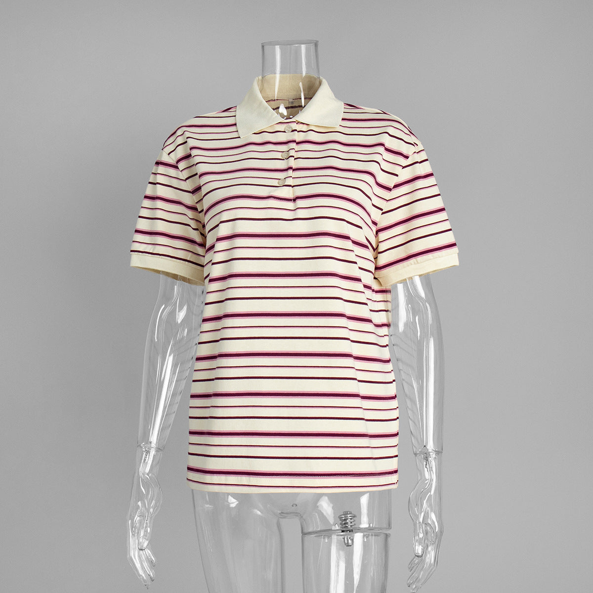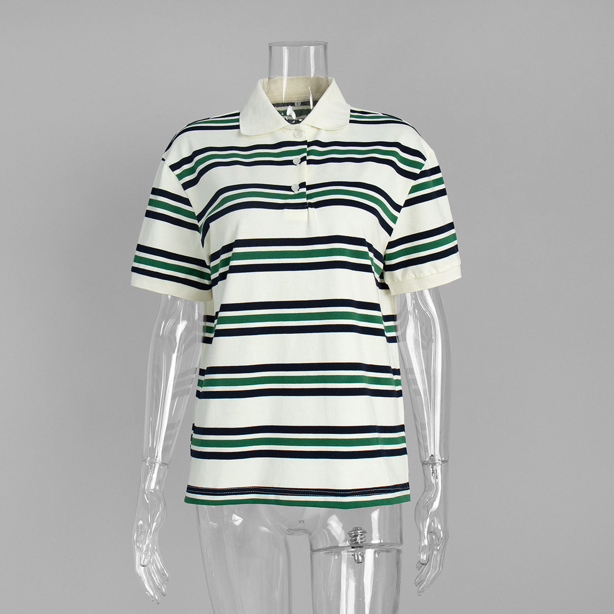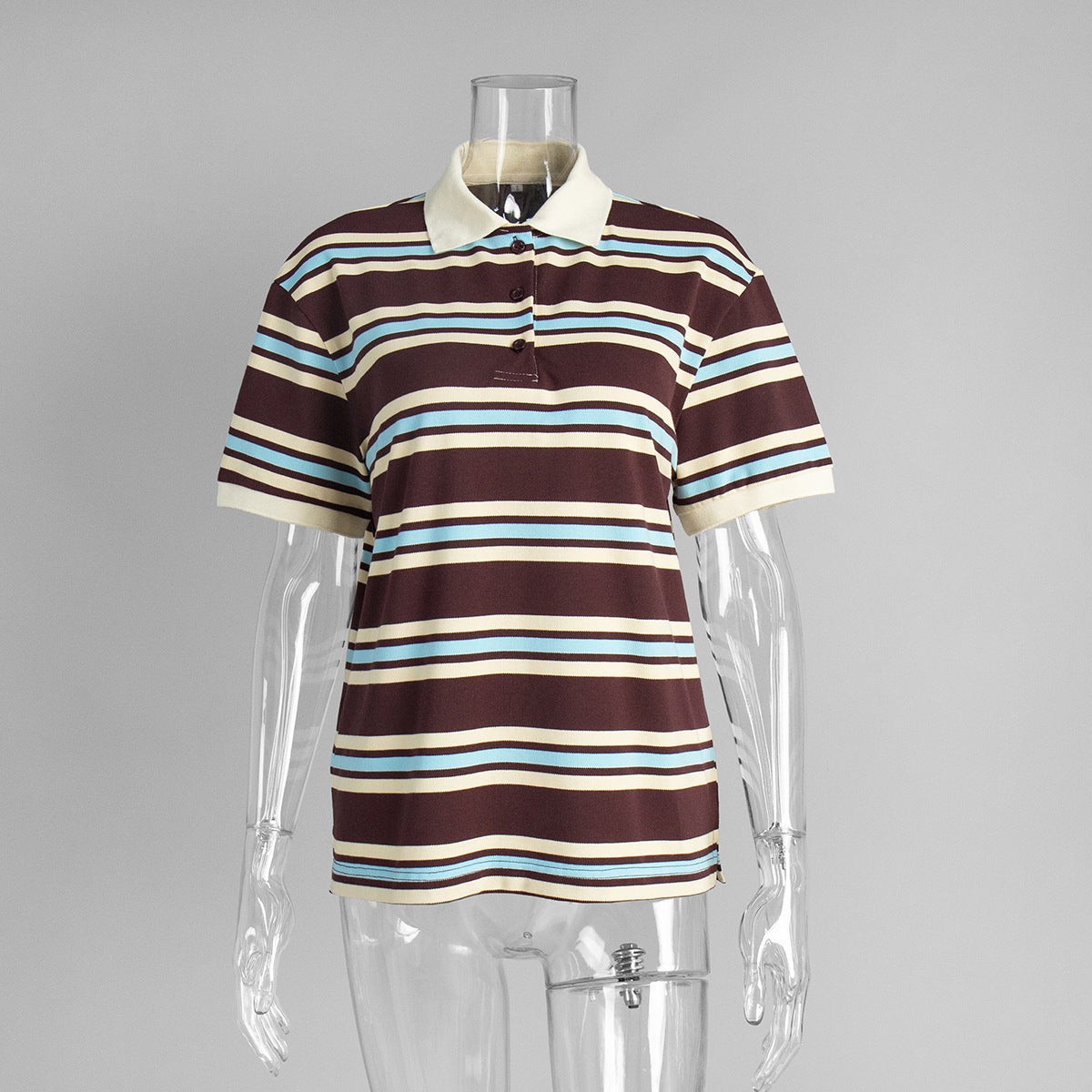 Striped Short-sleeved T-shirt Retro Contrast Color Polo Shirt