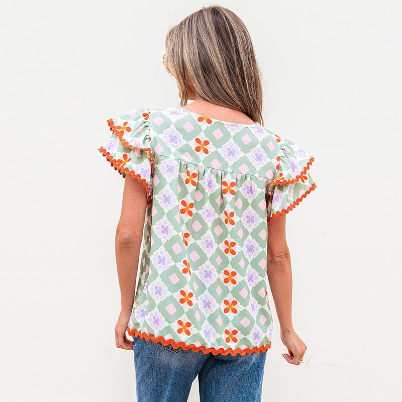 Women's Fashionable Multi-color Geometric Printed Chiffon Shirt