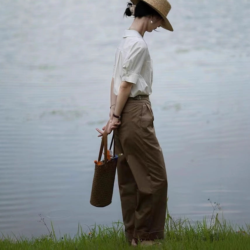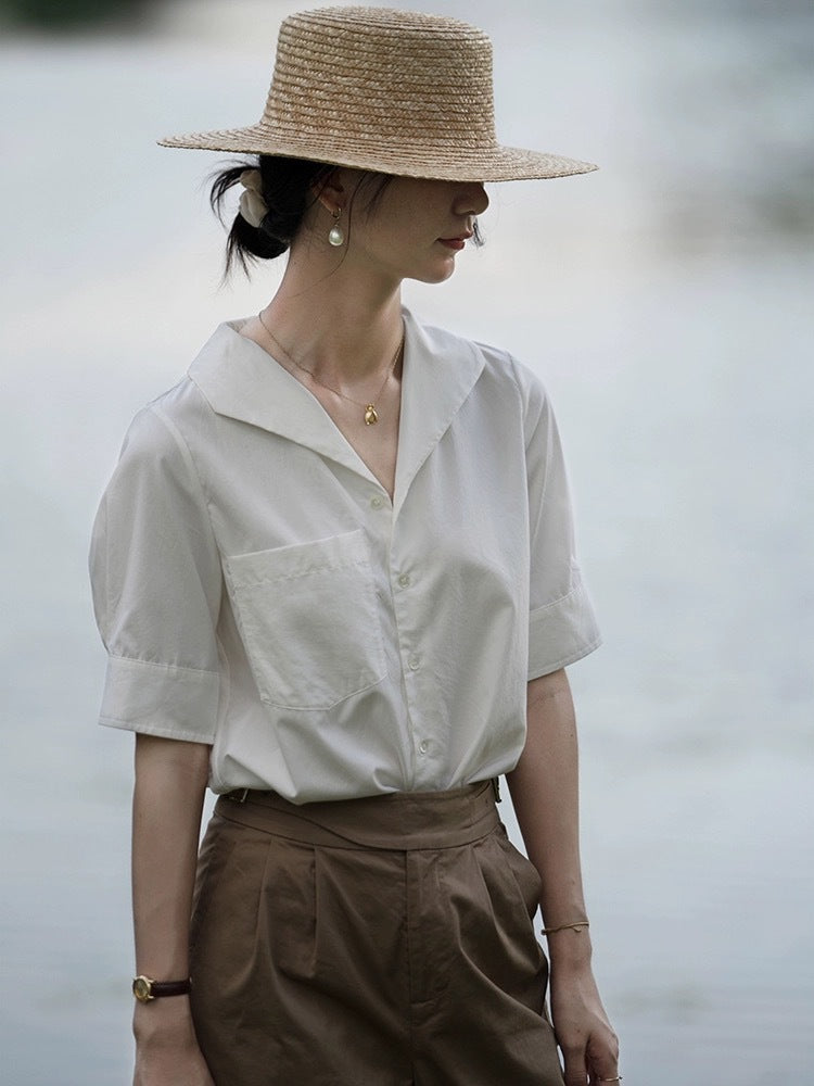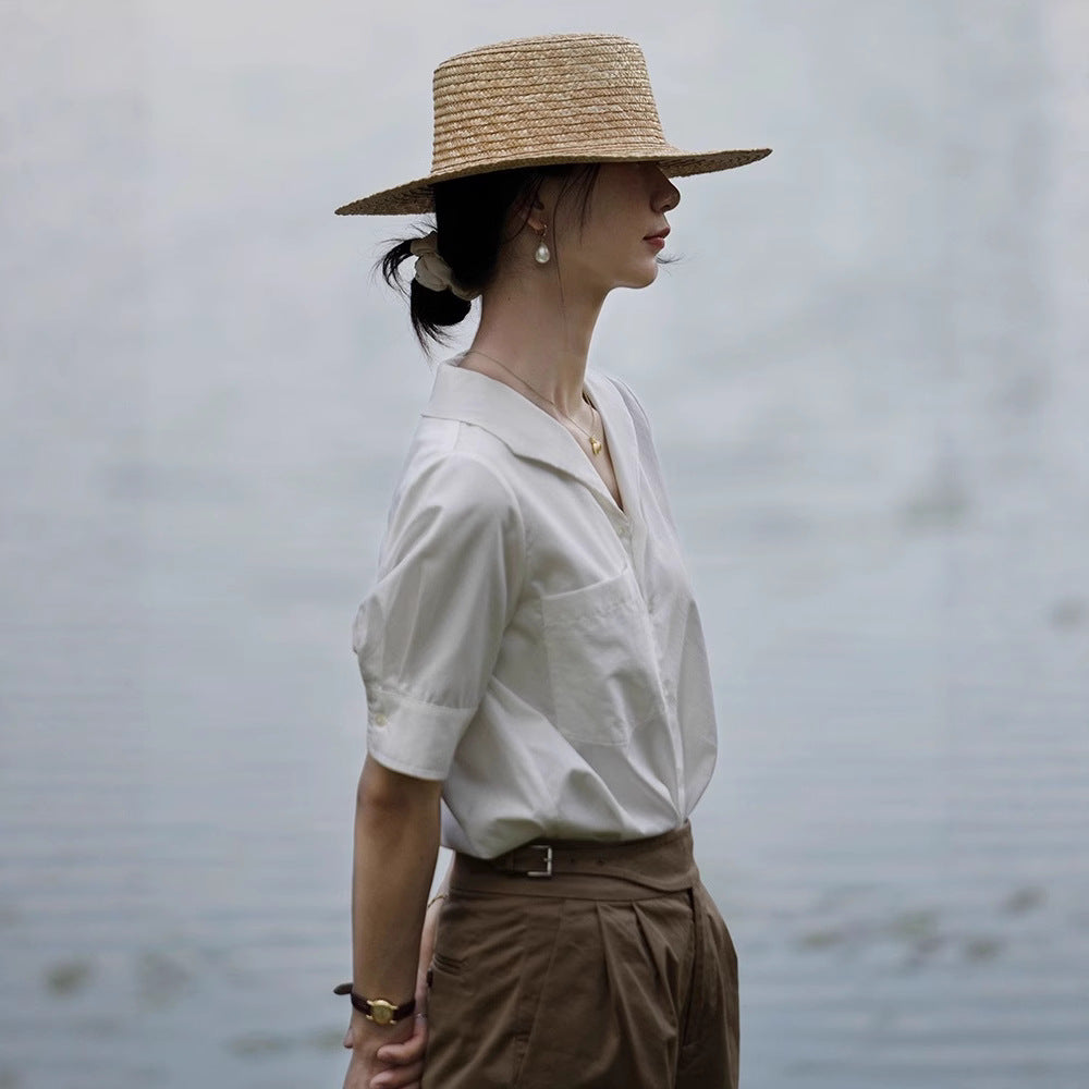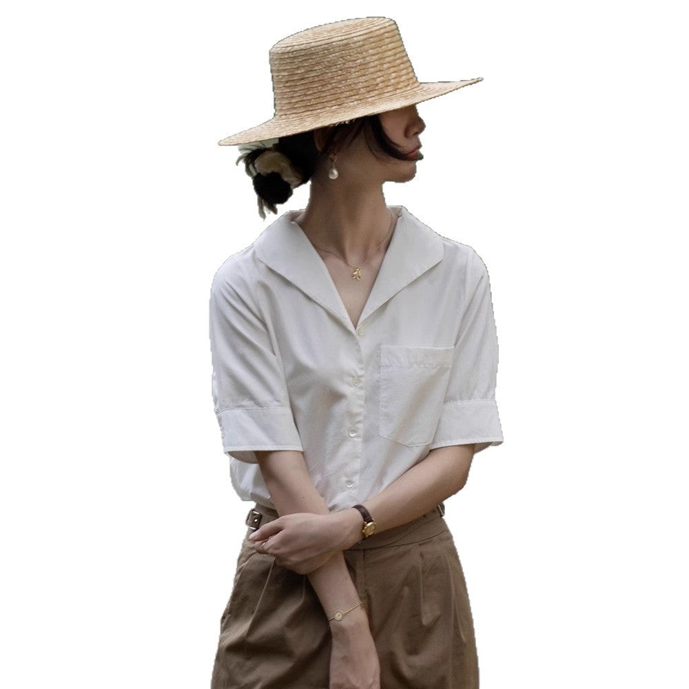 French Chic Design Niche Top Short Sleeve V-neck White Shirt